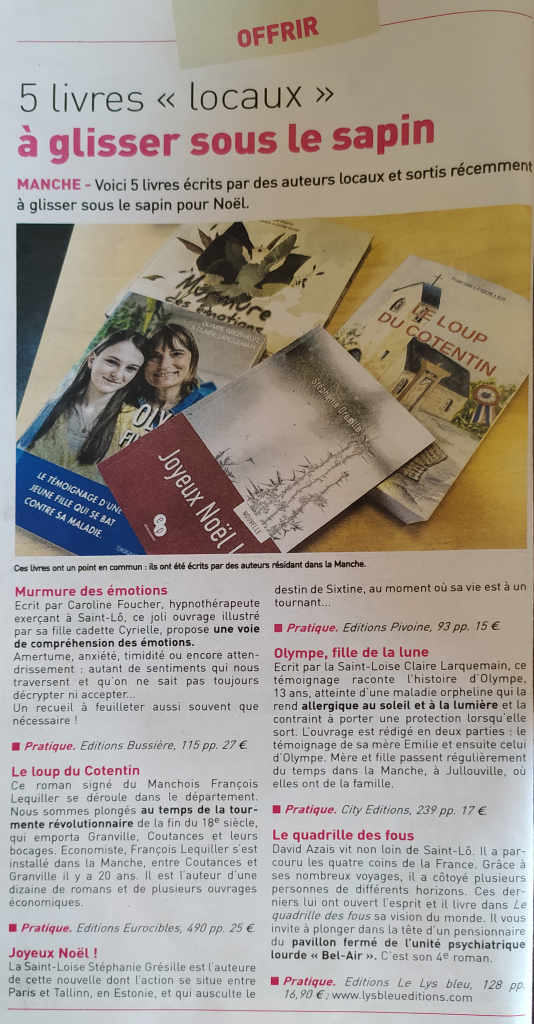 Il est disponible depuis novembre 2022 en sortie nationale dans toutes les librairies généralistes. Sur les plateformes telles que la FNAC, Amazon, Cultura, … mais aussi dans des librairies indépendantes telles que la librairie Les Racontars à Saint Lô ou la librairie Le salon des saisons à Tessy Bocage (pour ne citer que ces deux là).